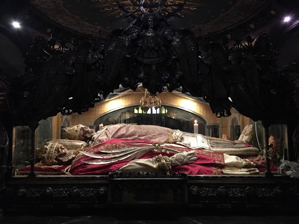 In 1974, for the 16th centenary of the Saint’s episcopal ordination, at the conclusion of a local jubilee held in preparation for the Holy Year of 1975, the relics were once again brought to the Duomo. At the time, significant repair works were being done to the church, and it was impossible to display them in the sanctuary; they were therefore placed on a temporary altar in the nave.